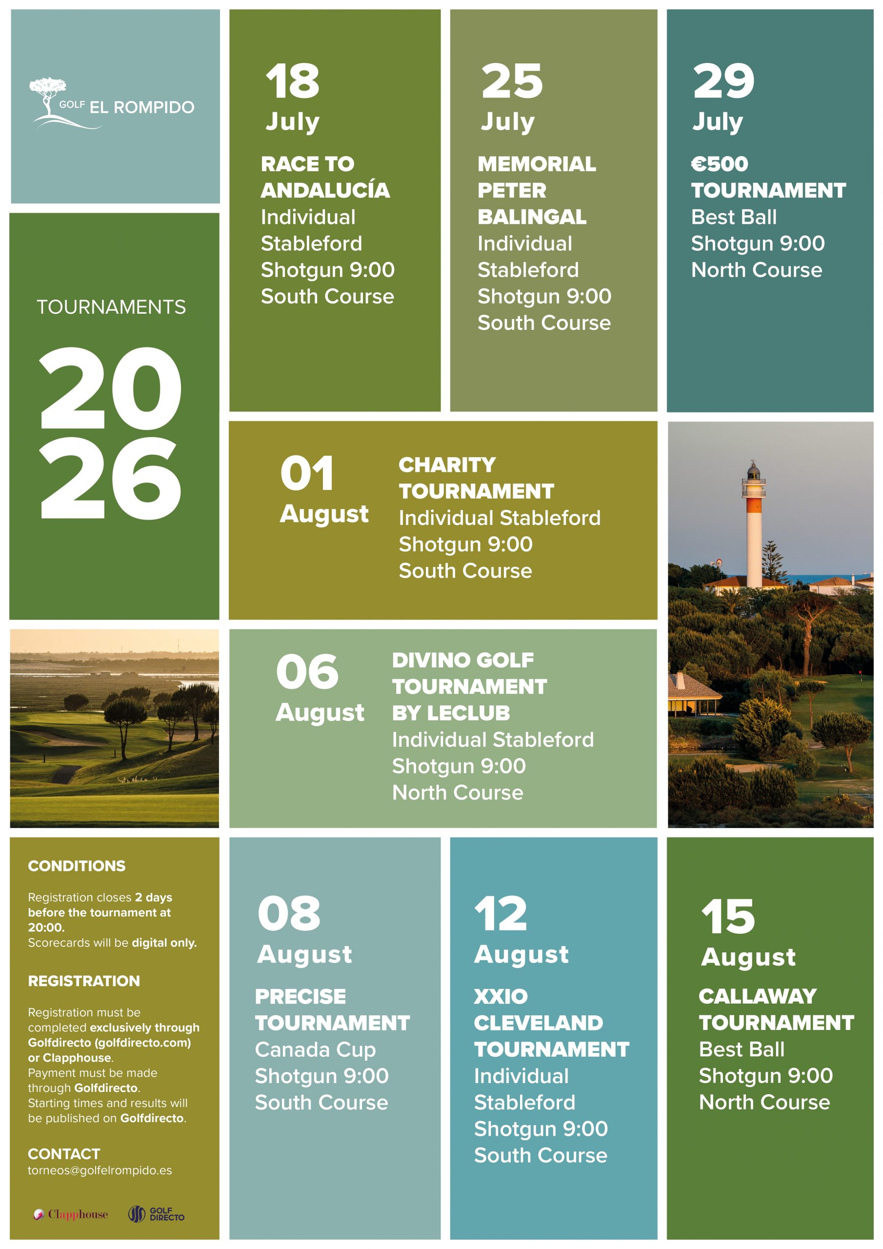 Contact Golf el Rompido for more information about tournaments: (+34) 959 02 42 42 | info@golfelrompido.es